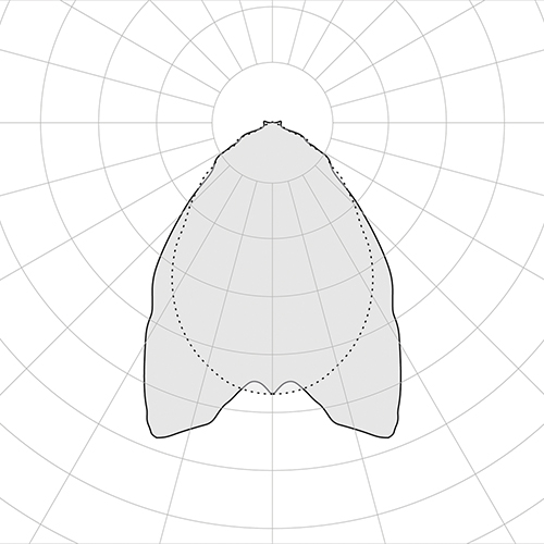 Mittlere Leuchtdichte <3000 cd/m² bei Radialwinkel >65°.