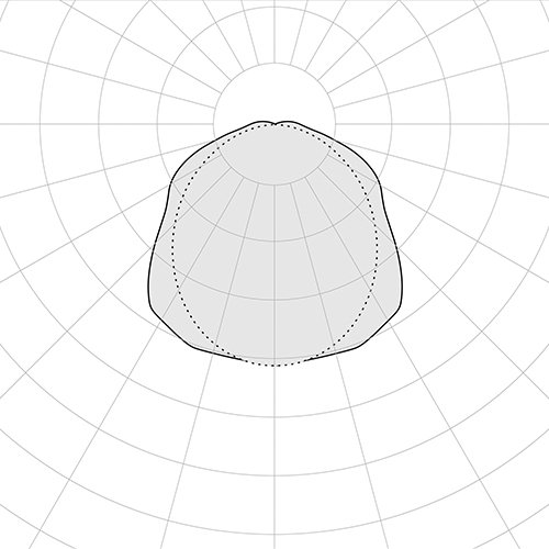 Diffusor in zelfdovend V2 gesatineerd polycarbonaat, UV‑bestendig, spuitgietwerk, met gladde buitenkant, manipulatiebestendige opening.